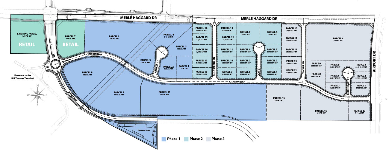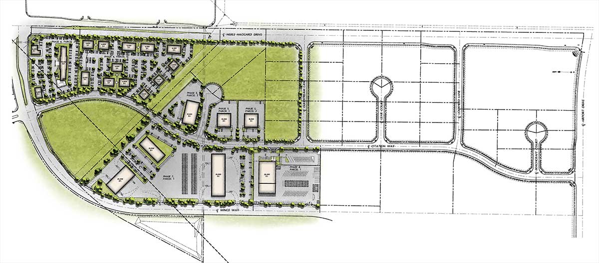 Silver Wings Commerce Center lies south of Merle Haggard Drive in between Wings Way and Airport Drive.